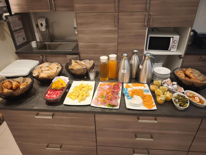 Autour de tables décorées aux couleurs de Noël, chacun a pu profiter d’un moment gourmand composé de viennoiseries, pains variés, confitures, salade de fruits, oeufs brouillés, charcuterie, fromages... et boissons chaudes. Ce temps de partage a permis de commencer la journée dans la bonne humeur, en favorisant les échanges et les rencontres entre tous les participants.