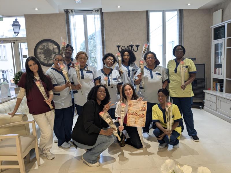 Offrir une rose à chaque femme de notre résidence est aussi un geste pour renforcer les liens entre résidentes et professionnelles, afin que chacune se sente valorisée et considérée.