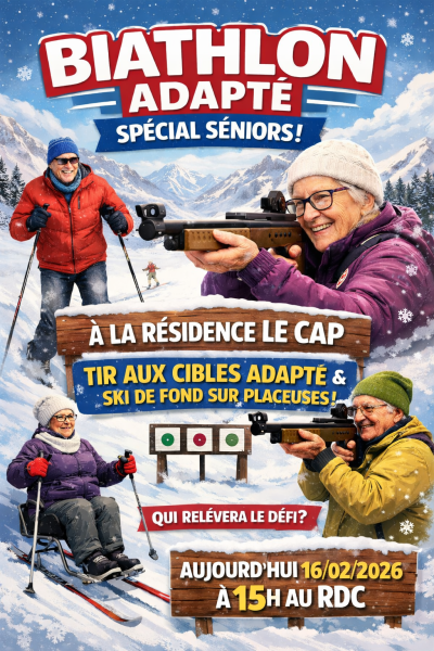 À l’occasion des Jeux Olympiques d’hiver, notre résidence vibre au rythme des exploits des plus grands athlètes internationaux. Inspiré par les performances observées lors des épreuves de Jeux olympiques d'hiver, Houssem, notre éducateur en Activités Physiques Adaptées (APA) a proposé aux résidents une activité originale et stimulante : un biathlon adapté.
