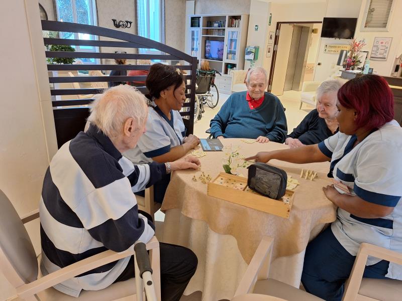 Au sein de la résidence, le week-end, lorsque l’animatrice n’est pas présente, les soignants et le personnel hôtelier contribuent activement à maintenir la vie sociale et le bien-être des résidents. Sans matériel complexe, ils mettent en place des activités simples mais essentielles pour stimuler la mémoire, renforcer le lien social et créer une ambiance apaisante.