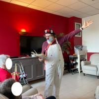 Publiée le 27/10/2022Cette semaine, les résidents ont fait la connaissance de la clown Olive, franche, joyeuse et idéaliste.. Derrière ce personnage attachant se cache Amélie, art-thérapeute, qui embarque les résidents dans son imaginaire et son univers poétique dans le but de susciter des émotions et de proposer une interact [...] Lire la suite