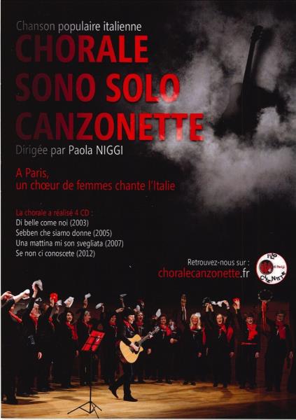 Créée en 1997 par cette dernière, la Chorale Sono Solo Canzonette est une chorale de femmes qui met à l’honneur le riche patrimoine culturel italien à travers des chants populaires et traditionnels, interprétés avec passion et authenticité.